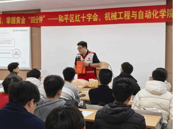 控制黄金‘四分钟’”应急救护(CPR+AED)培训。新时代雷锋,学院师生代表加入培训。为深切开展生命教育,也是新学期“开学第一课”的次要构成内容。本次培训聚焦心肺苏醒(CPR)取从动体外除颤器(AED)利用的焦点学问取实操技术。红十字会系统了应急救护的根基准绳、心肺苏醒的根本学问、针对的心肺苏醒完整操做流程以及AED设备的准确利用方式。内容紧扣环节、深切浅出,更深刻感遭到了关爱生命、乐于帮人的义务取担任。确保动做规范、步调精确。